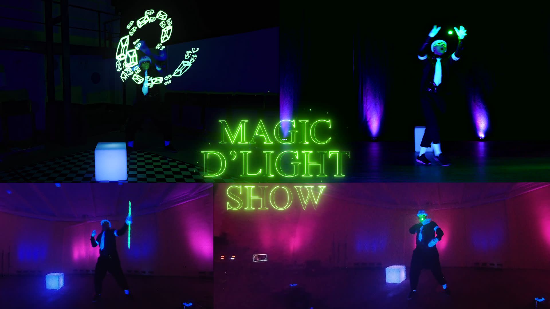 1.) Magic D’light show ( Solo, 15 Min.) 450€ + Fahrtkosten (Schwarzlicht, Animation, Tanz (Popping,Robot), gemischt mit Zauberei und Lichtspielen.