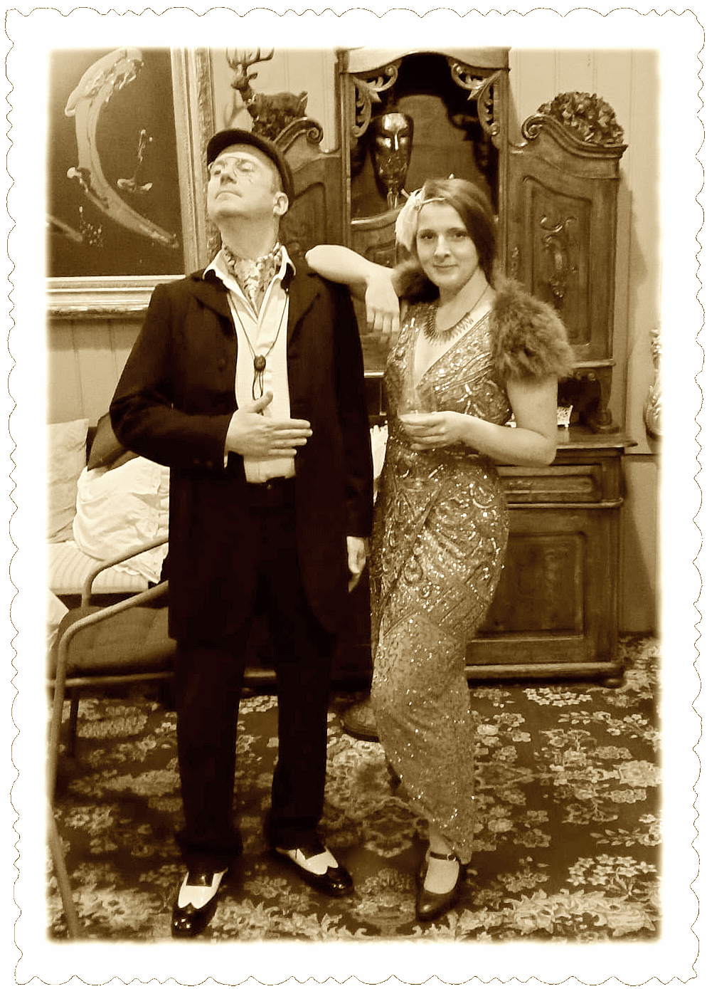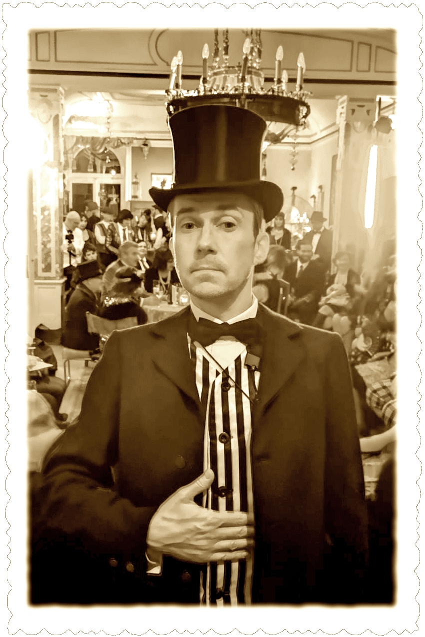 Hochverehrtes Publikum! Feiern Sie mit uns wie the Great Gatsby! Gehen Sie mit uns auf musikalische Zeitreise zurück in die goldenen 1920er Jahre, in die Zeit der Prohibition mit Fransenkleidchen und Absinth, Federboas, geknöpften Hosenträgern, Fliege, Zwickel und Zylinder! Wir entführen Sie in die "gute alte Zeit" der deutschen Gassenhauer - frisch - frech - frivol - fröhlich - beschwingt - nostalgisch - anzüglich - aber stets niveauvoll und authentisch interpretiert, wie einst von den Comedian Harmonists und auch heute noch z.B. von Max Raabe. Wir garantieren allerbeste Unterhaltung mit viel Wortwitz und Spaß in jeder Altersgruppe. Hören Sie Alltagsschlager unvergessener Stars wie Marlene Dietrich oder Zarah Leander, tanzen Sie zu heißem Charleston und Swing, lauschen Sie humorvollen Kabarettstückchen in charmanter Präsentation. Wir garantieren allerbeste Unterhaltung mit viel Wortwitz und Spaß in jeder Altersgruppe! Mit einst populärer Unterhaltungsmusik, Filmschlagern und Tanzmusik aus den "goldenen" 1920ern in vorwiegend deutscher Sprache unterhalten und entführen wir unser Publikum stilvoll in dieses faszinierende Zeitalter vergangener Tage, welches zudem herzlich zum Mitsingen und Mitmachen eingeladen ist. Folgen Sie uns auf eine Reise in die prickelnden "Roaring Twenties" voller Glanz und Glamour!