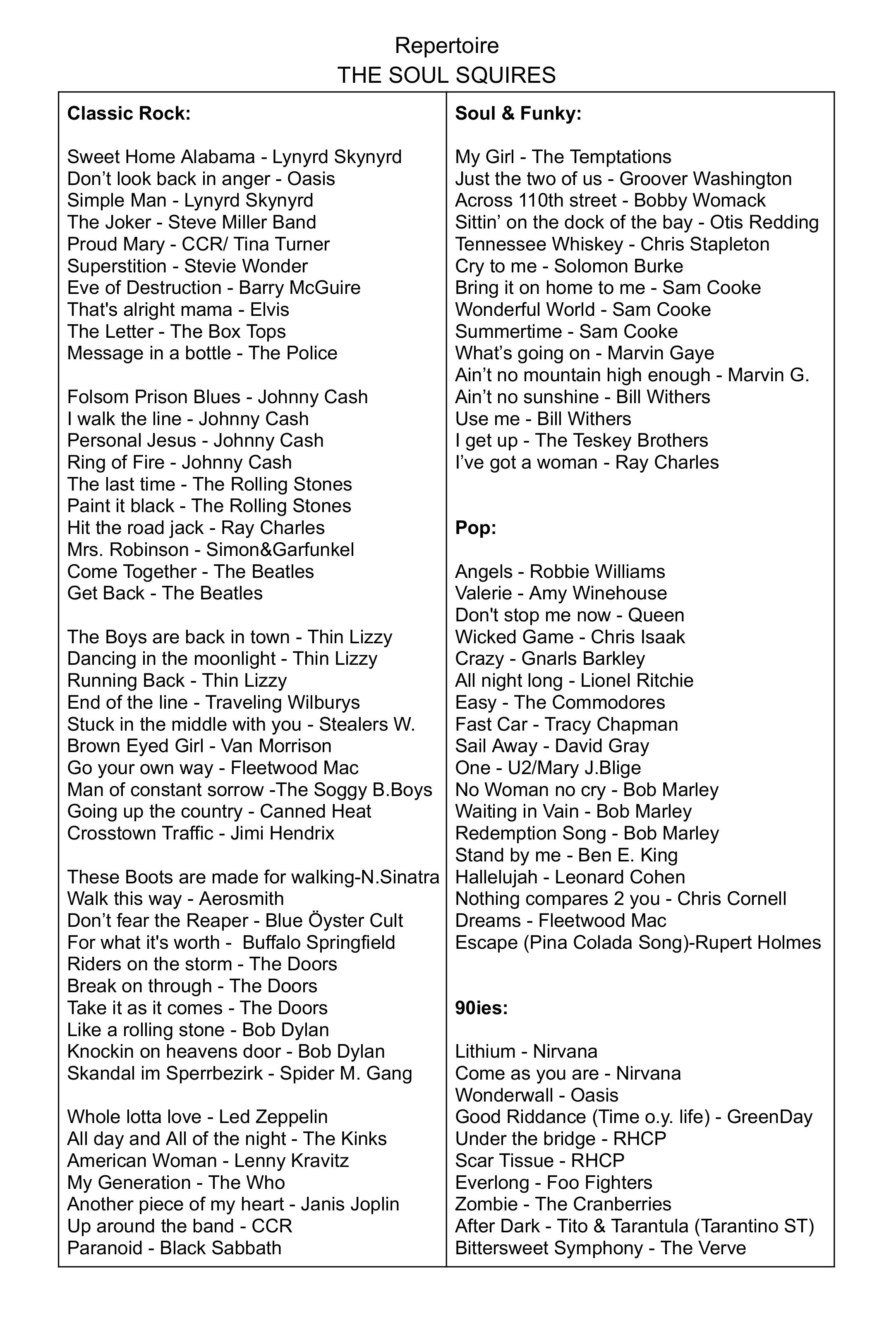 Kostenlose Anfrage an The Soul Squires - Coverband, Rockband, Hochzeitsband