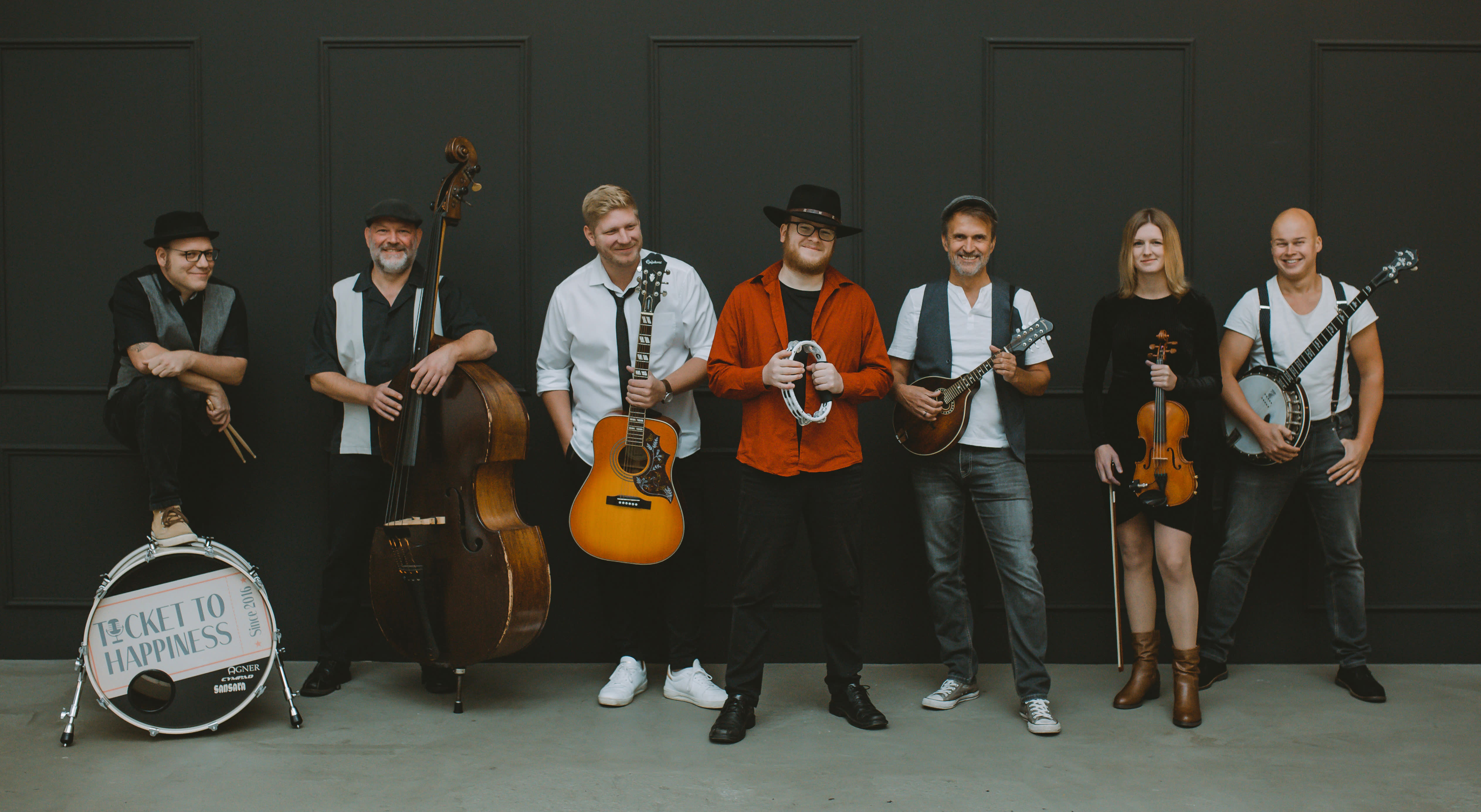 Ticket to Happiness – der Name ist Programm! Musikstil und Motivation der Band aus Siegen, Münster und Bielefeld ist energiegeladener Folkrock mit dem Anspruch, die Zuhörer und sich selbst in einen emotionalen Zustand der Freude, der Feier- und Tanzlaune, des Glücks zu versetzen. Schnelle, tanzbare Folksongs wechseln sich ab mit gefühlvollen Balladen und virtuosen Instrumentalstücken. Dabei nehmen die sieben Vollblutmusiker ihre Zuhörer mit auf eine abwechslungsreiche musikalische Reise – mal mit Elementen von irischem oder amerikanischem Folk, mal im Gefühl südeuropäischer Straßenmusik.