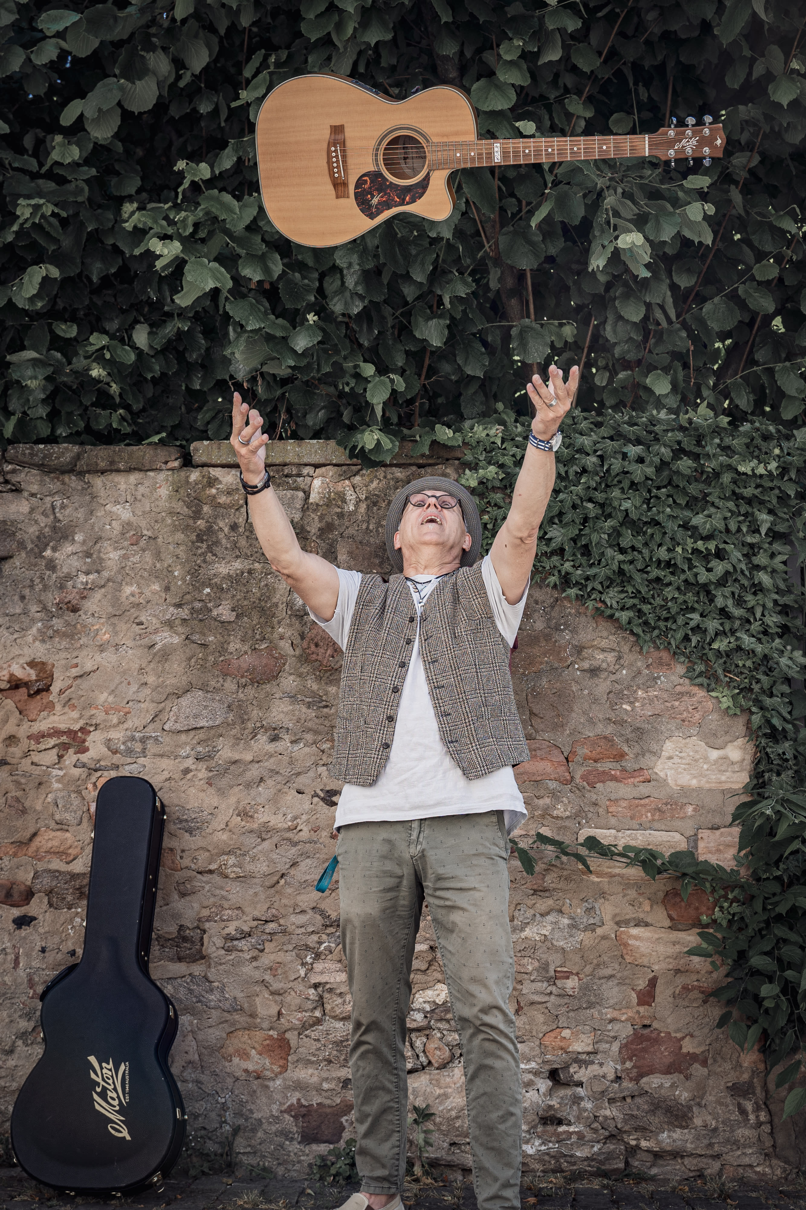 Nur eines von vielen Bühnen-Programmen: Der in Mühlheim lebende Musiker, Sänger und Musikproduzent TOM simon JET hat er sich einen lange gehegten Wunsch erfüllt und seine „favorite songs„ in ein abwechslungsreiches SOLO-Programm arrangiert. Dabei spielt die Gitarre eine -gelinde gesagt- nicht unerhebliche Rolle, denn Tom beherrscht dieses Instrument nicht nur, er erzählt seine musikalische Geschichte anhand von Songs und deren song-prägenden Gitarrenmodellen.