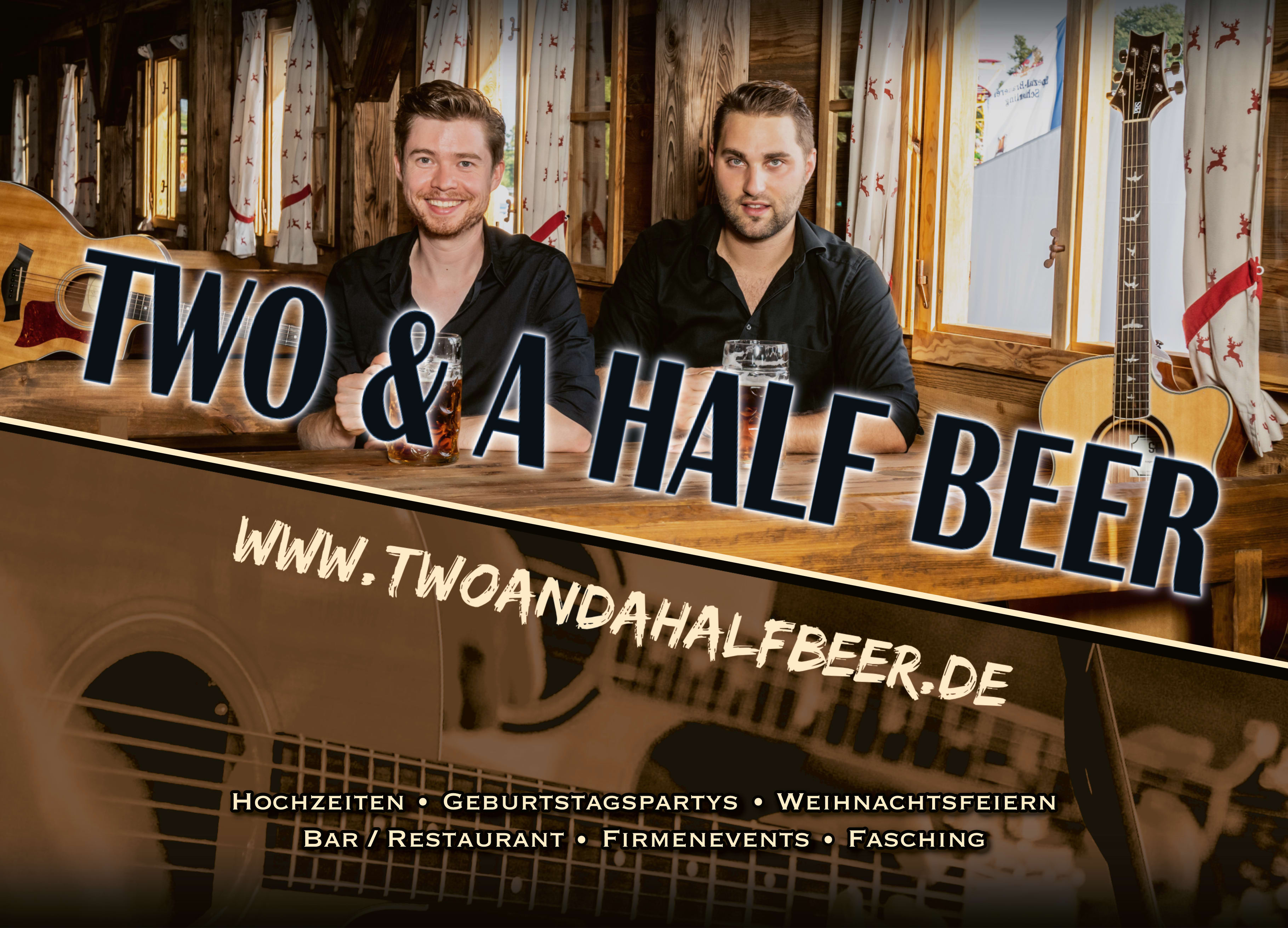 Wir sind die AKUSTIKBAND | HOCHZEITSBAND | PARTYBAND "TWO & A HALF BEER" aus Regensburg in Bayern! Wir sind zwei fesche Buam, spielen alles was das Herz begehrt und heizen euch die Hütte so richtig ein!