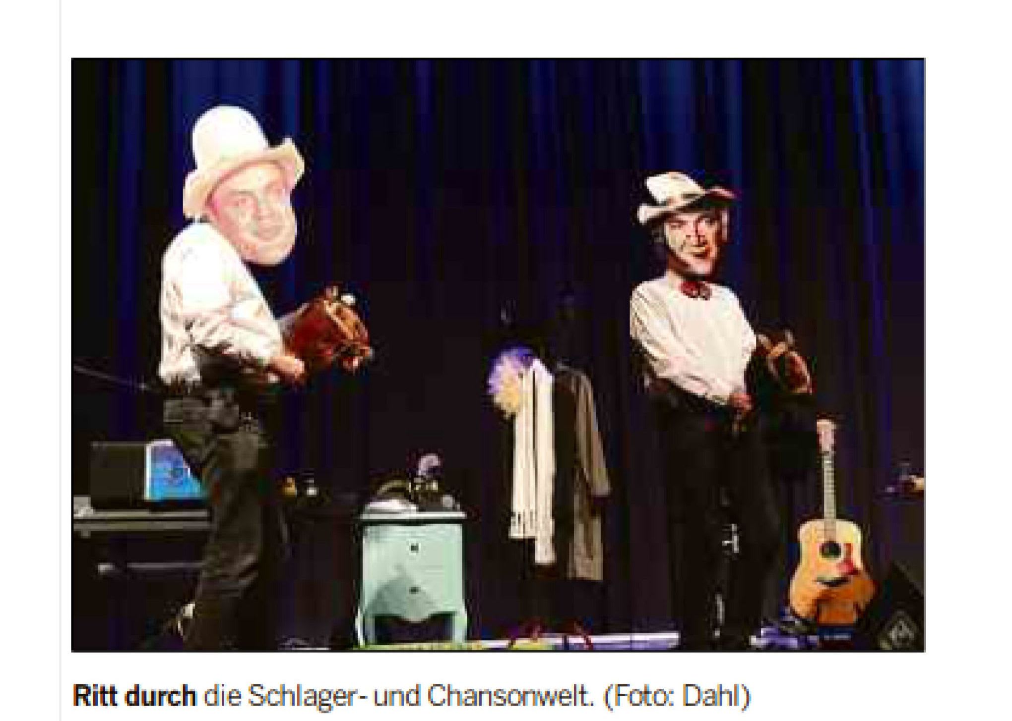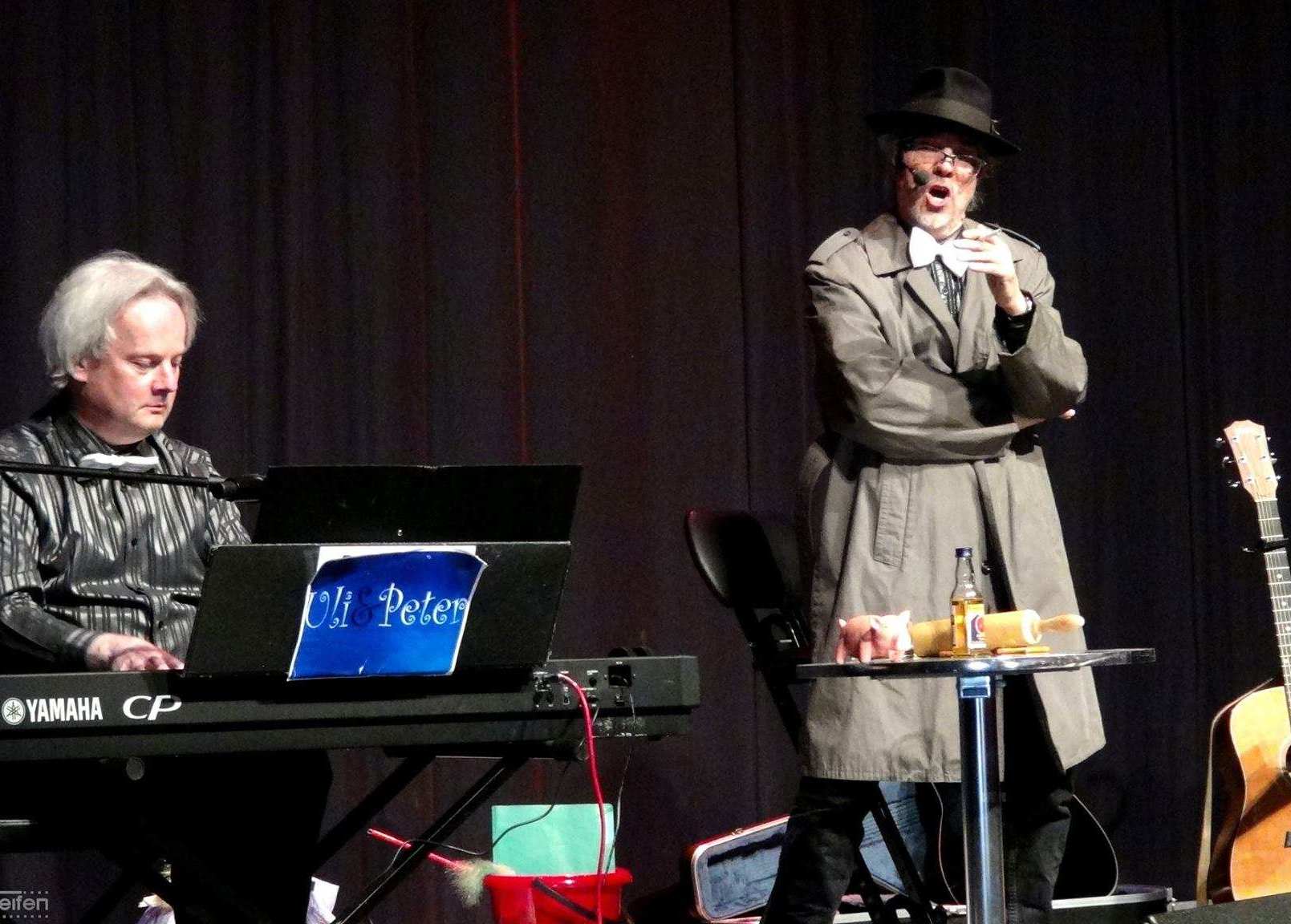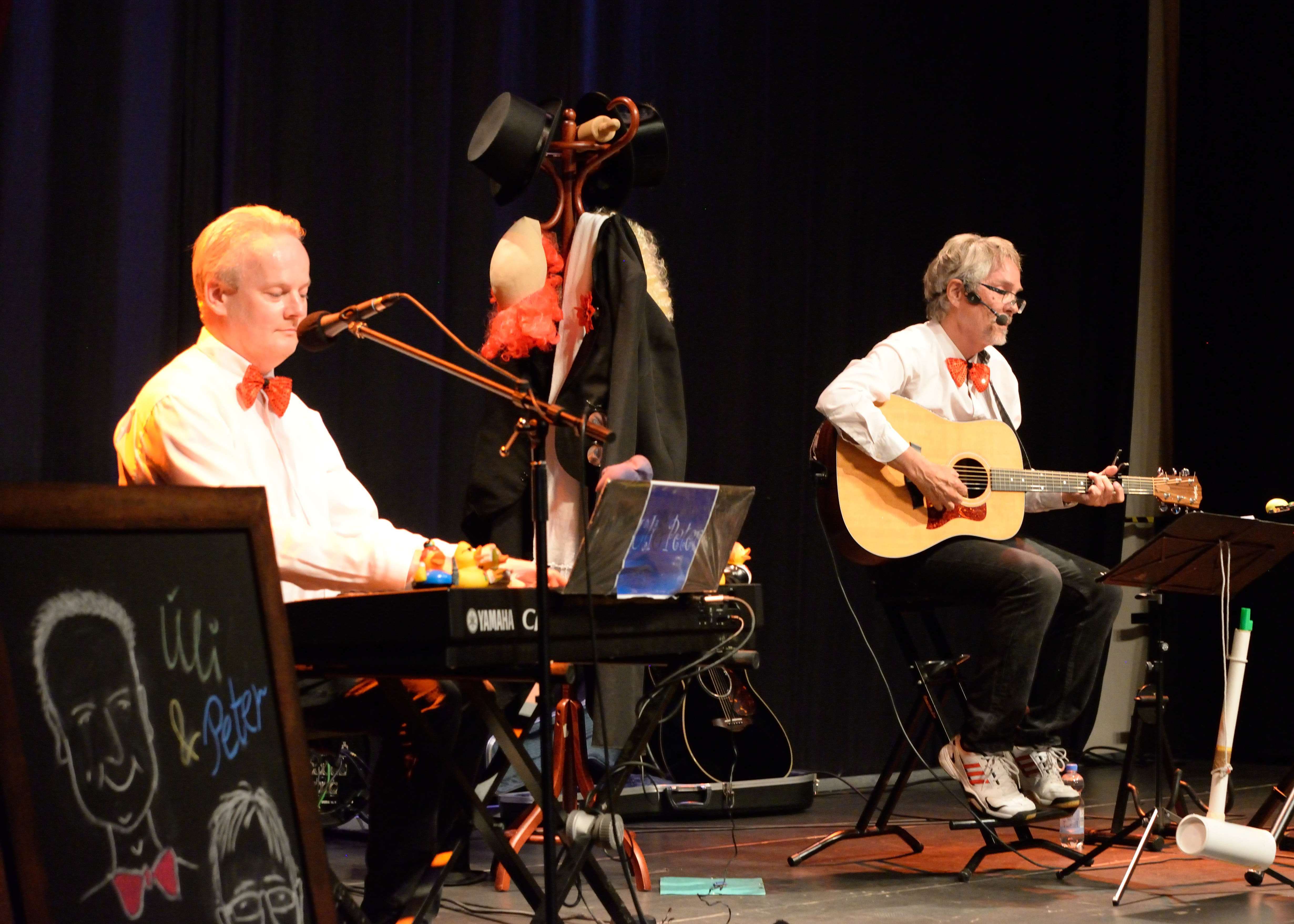 Wir unterhalten mit Keyboard/Klavier, Akustikgitarre und eigenen Liedern im Liedermacher-Stil das Publikum in Cafés, Musikkneipen und kulturellen sowie sozialen Einrichtungen aber auch im kleinen familiären Kreis. Neben den eigenen heiter-besinnlichen Liedern über Menschen, Macken, "Malörchen" und die Skurrilitäten des Alltags, gehören auch Werke deutsch- und englischsprachiger Liedermacher, Oldies der 60er-, Schlager der 30er-Jahre und "Kölsche Lieder" zum Programm.