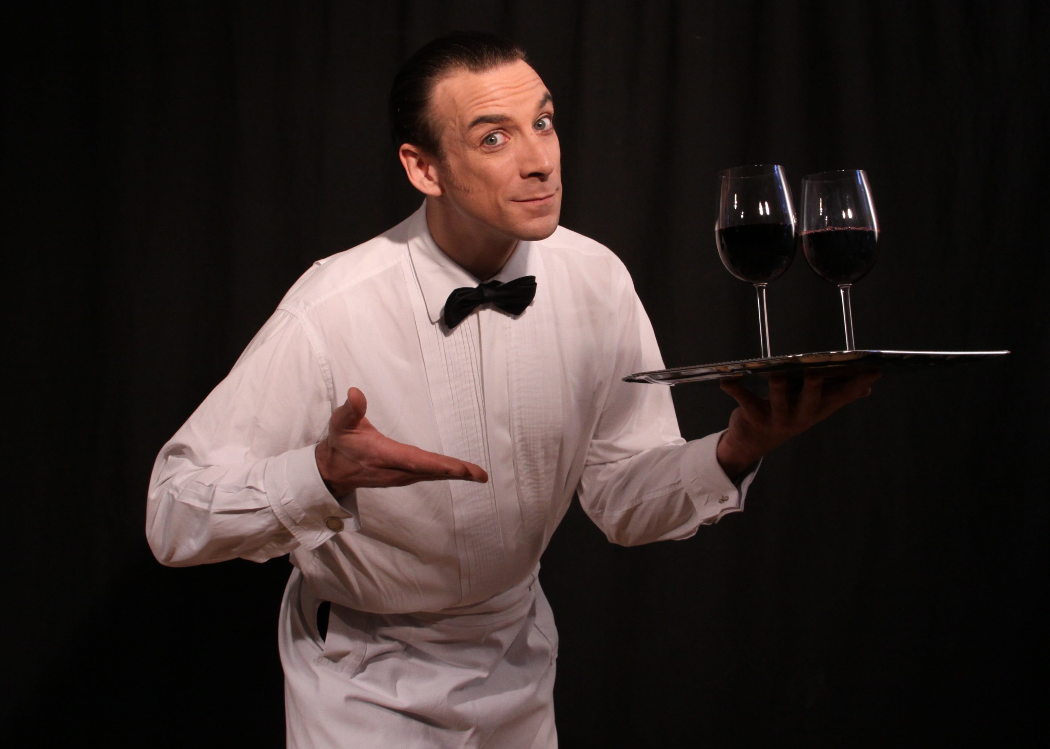 - pantomimischer Spaßkellner vom Empfang bis Ende des Hauptgangs (meist ca. 2-3 Stunden, keine Voraussetzungen)