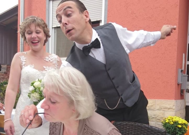 Ob als Spaß-Kellner, Pantomime oder Akrobat: Herr Steybe ist Spitze.