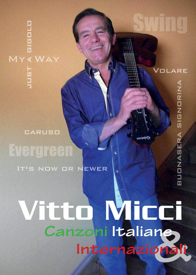 Vitto Micci, ich trete auf als Alleinunterhalter mit Gitarre mit und ohne Playbacks; ich trete auch auf mit einem hervorragendem Swing Pianisten falls die erwünschte Musik mehr Richtung Swing und amerikanische und internationale Evergreens gehen sollte.