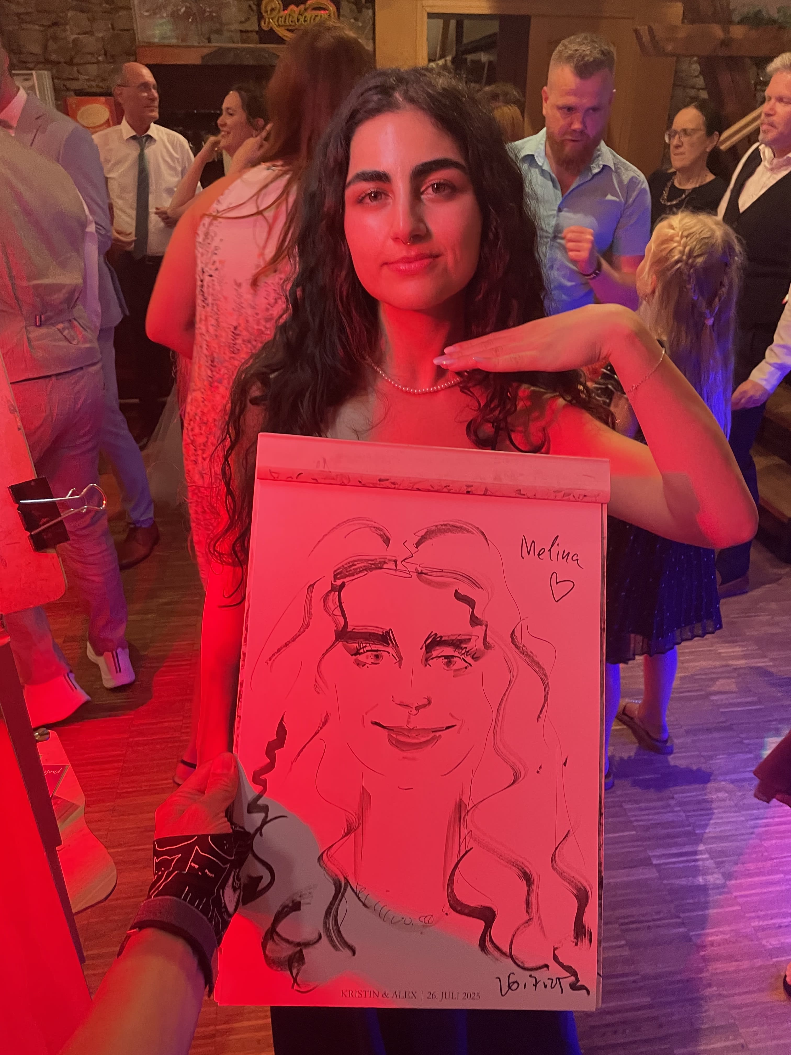 Ich porträtiere Ihre Gäste vor Ort – schnell, charmant und mit künstlerischem Feingefühl.