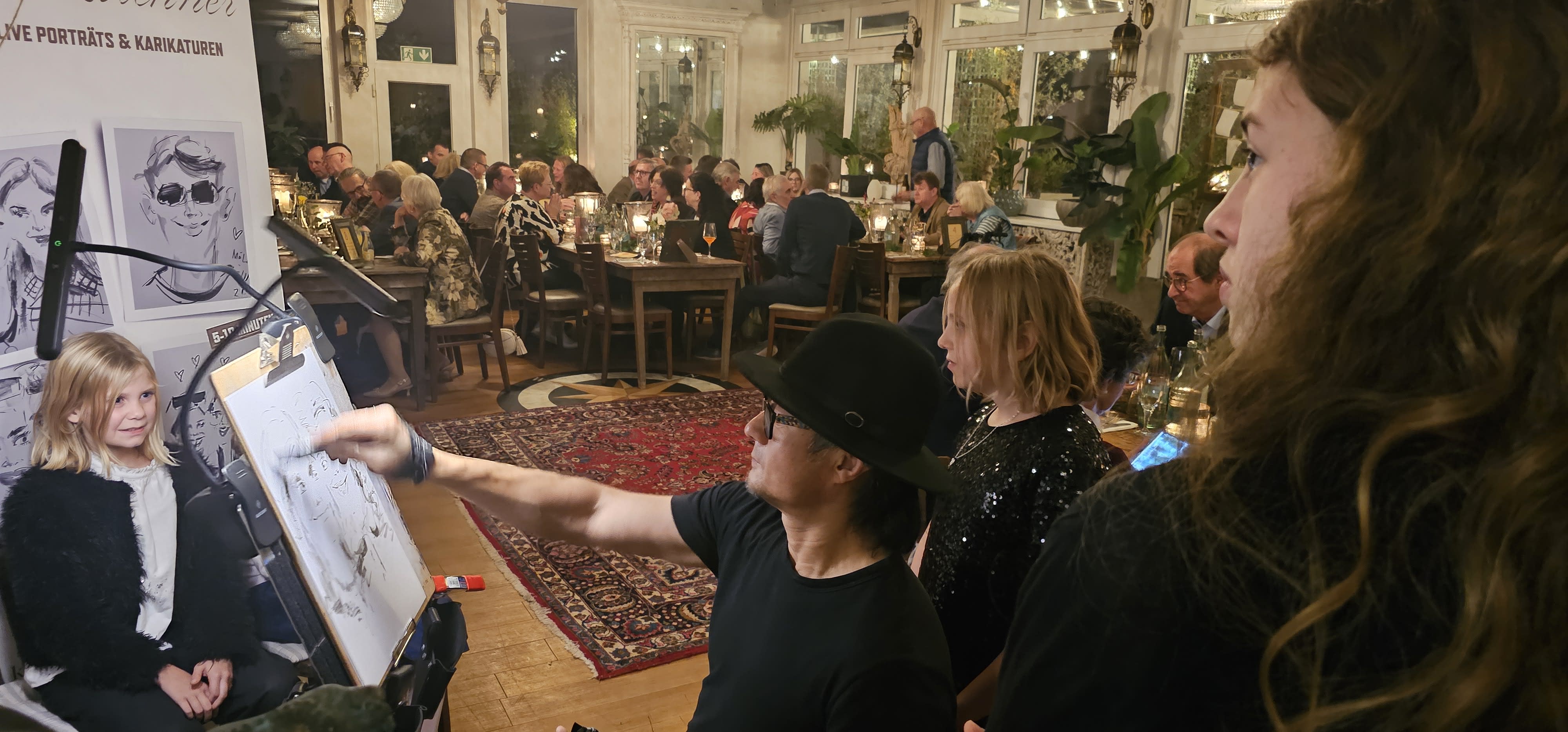 Live gezeichnete Porträts sorgen für besondere Unterhaltung und bleibende Eindrücke.