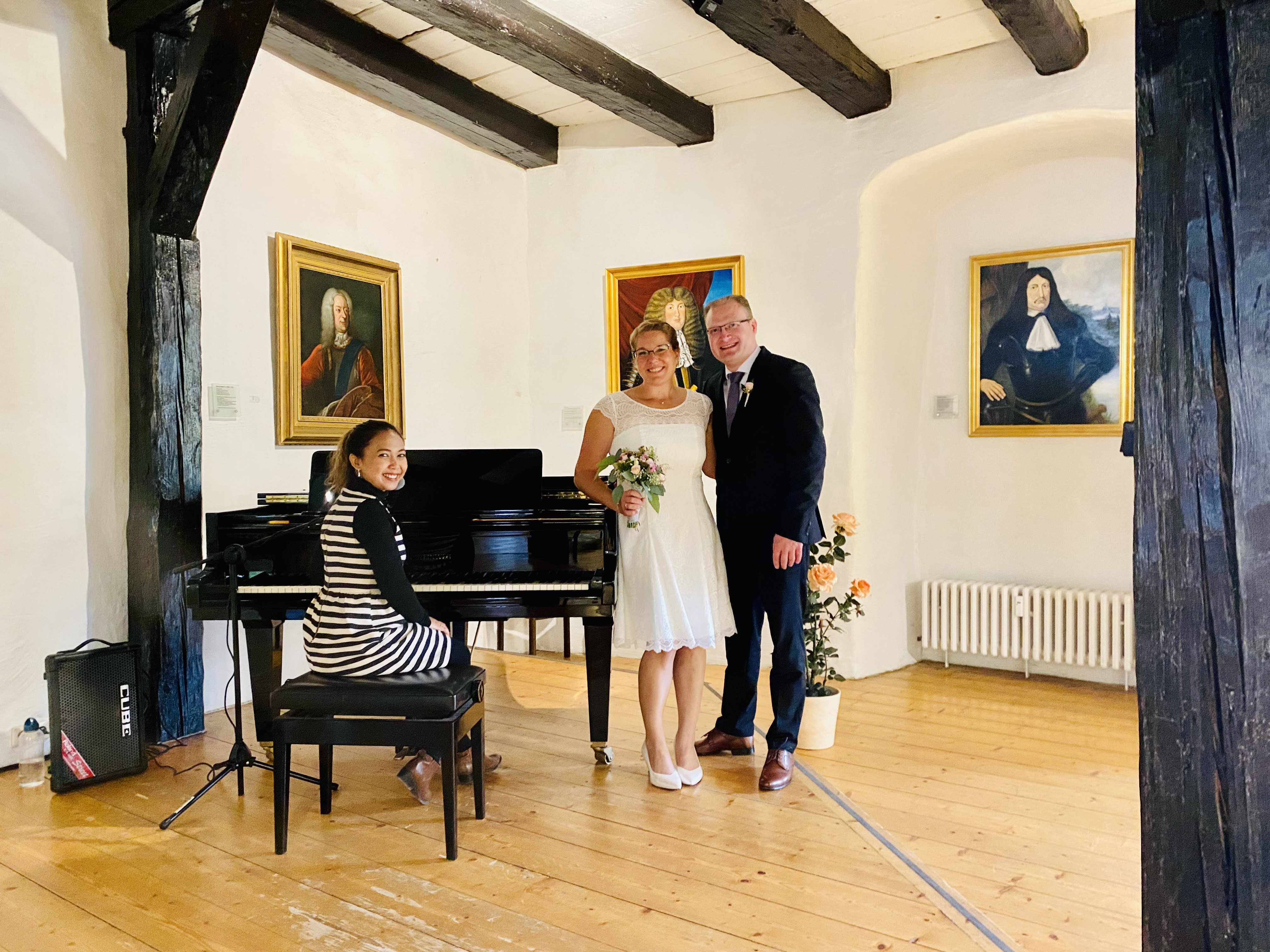 Sie hat sich viel Zeit genommen, uns Tipps zu geben – von der Songauswahl bis zum Ablauf der Trauung. Sogar eine kleine Live-Probe bei ihr zu Hause hat sie uns angeboten, ganz ohne Aufpreis!