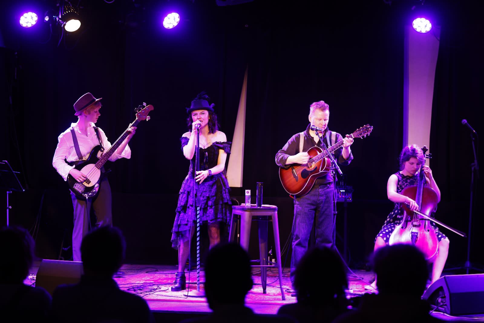 Mit einer Besetzung aus mehrstimmigem Gesang, Cello, Gitarre, Bass und Schlagzeug spielen wir Titel aus den Genres Folk/ Country, über Blues, Rockabilly, Bluesrock, bis hin zur Moderne.