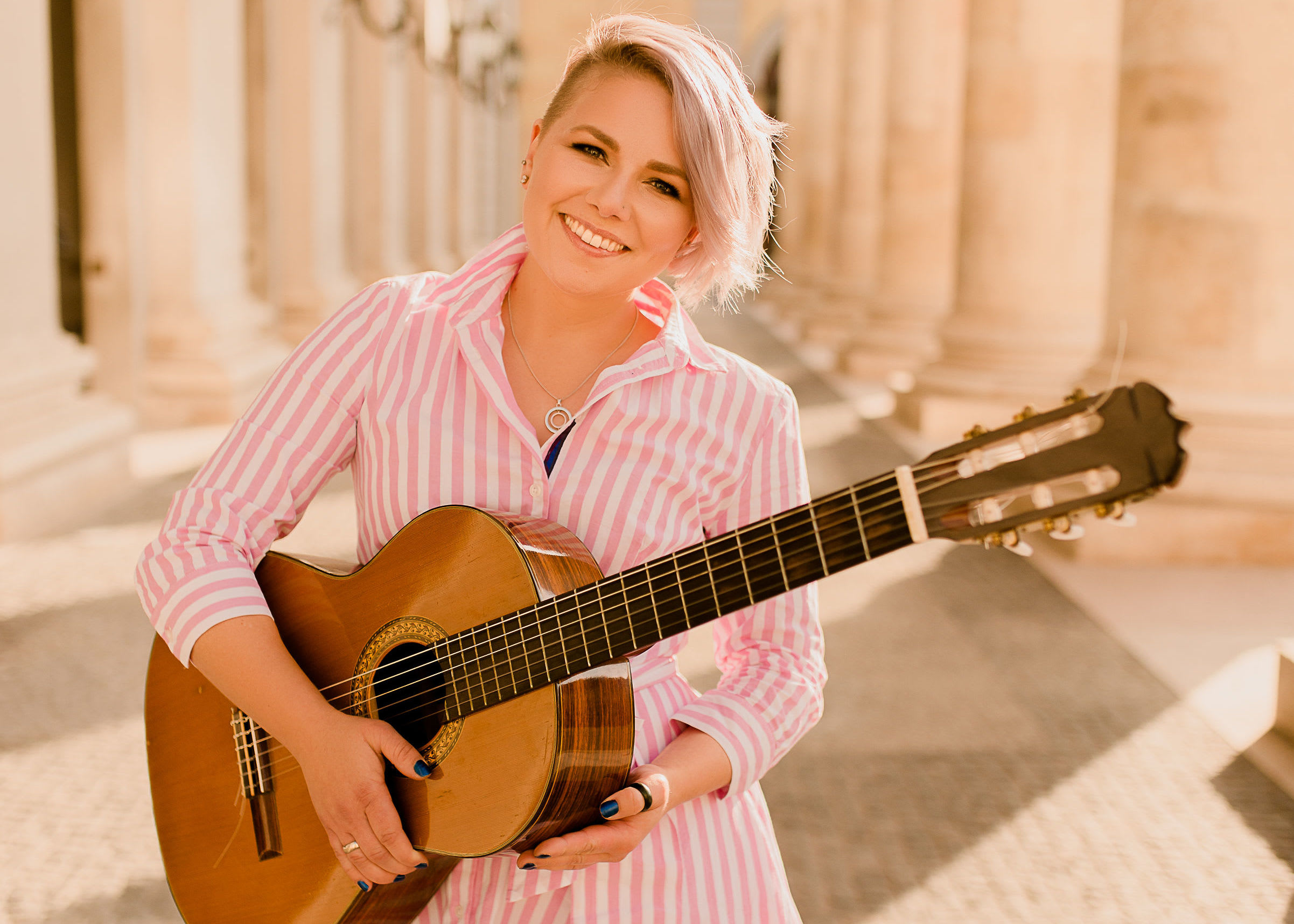 Diese Harmonie und Entspanntheit ist mir sehr wichtig: mit meiner Musik möchte ich Türen öffnen und Menschen zusammenbringen – denn Musik ist für mich auch eine großartige Vermittlerin. Zwischen Menschen ebenso wie zwischen Kulturen. Wie universal die Sprache der Musik ist, habe ich in den vergangenen Jahren immer wieder erlebt. Ich komme ursprünglich ja aus Neuseeland, wo meine Liebe zur Musik und vor allem zum Musical begann. Ich studierte Musiktheater an der Universität von Auckland, sang und tanzte mit Erfolg erste Musicalrollen und machte mich dann 2010 auf den Weg nach Schottland, um am Royal Conservatoire of Scotland weiter zu studieren. Mit einem Masterabschluss in der Tasche ging es dann nach London: ich eröffnete mein erstes eigenes Gesangsstudio und trat nun auch regelmäßig bei Festen, Hochzeiten und anderen Anlässen auch international auf. Heute lebe ich in der Nähe von München – die Liebe hat mich nach Bayern gebracht. Ich unterrichte und singe nun in meiner Wahlheimat – und am liebsten demnächst auf Ihrer Veranstaltung!